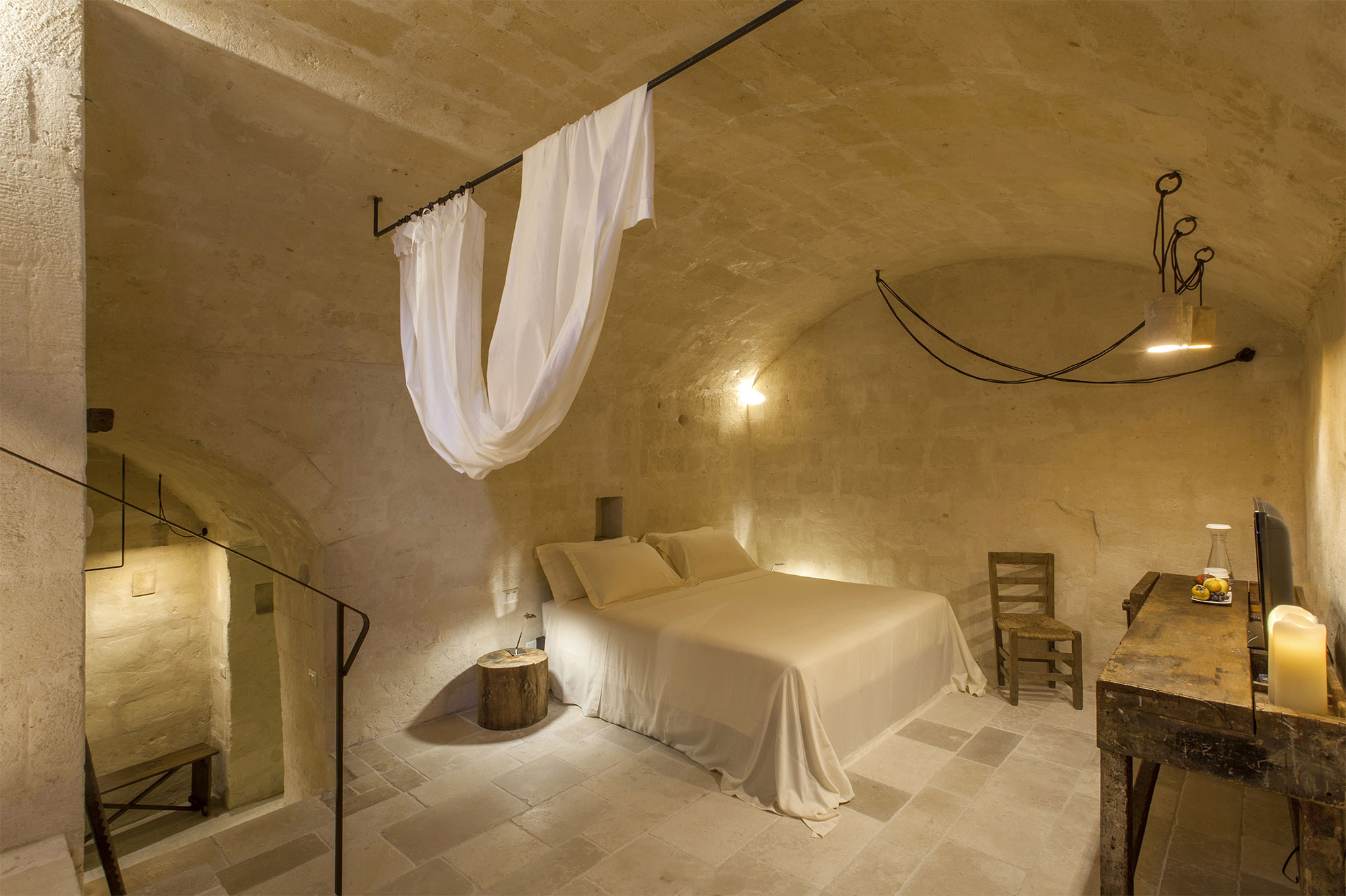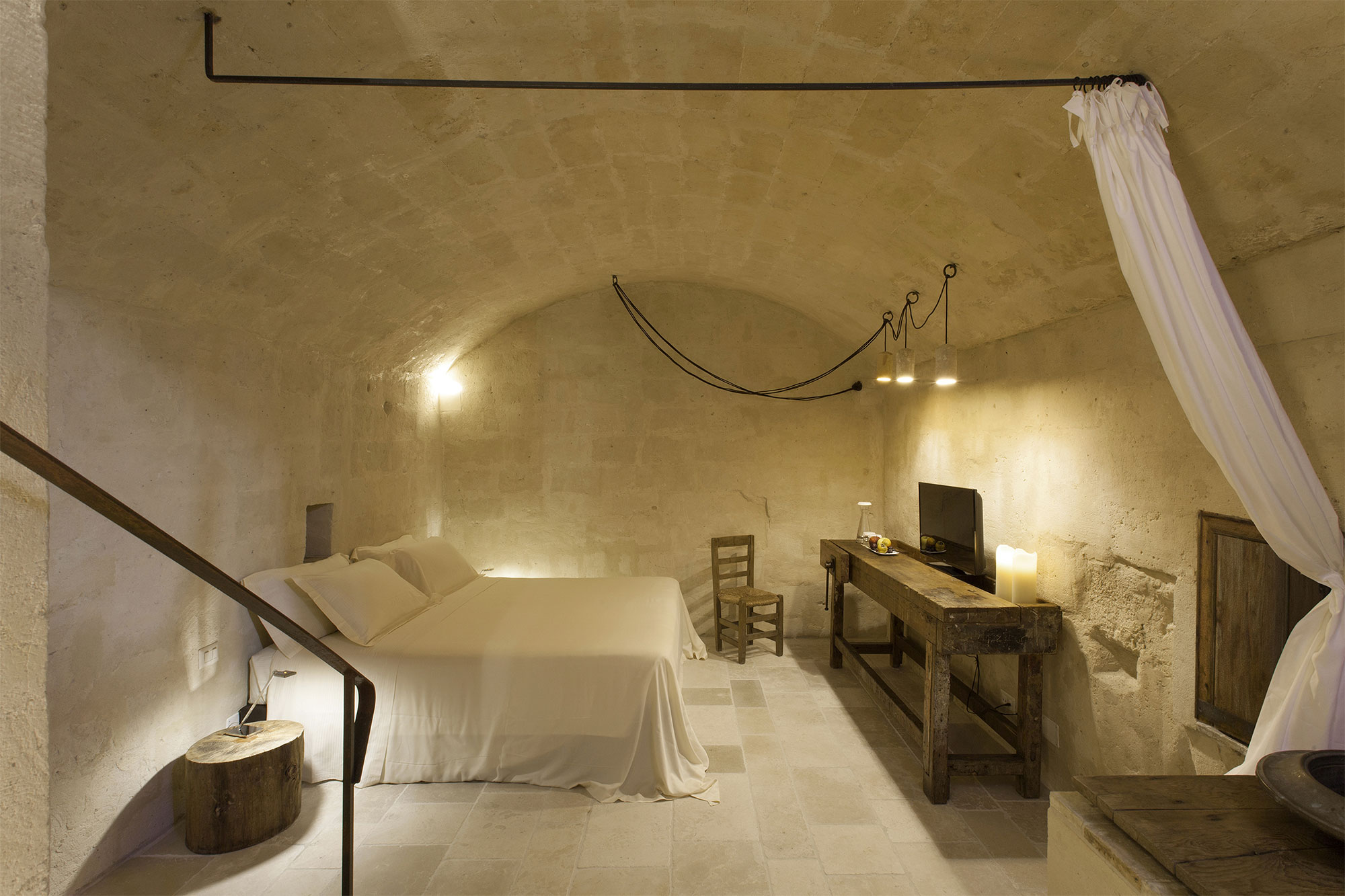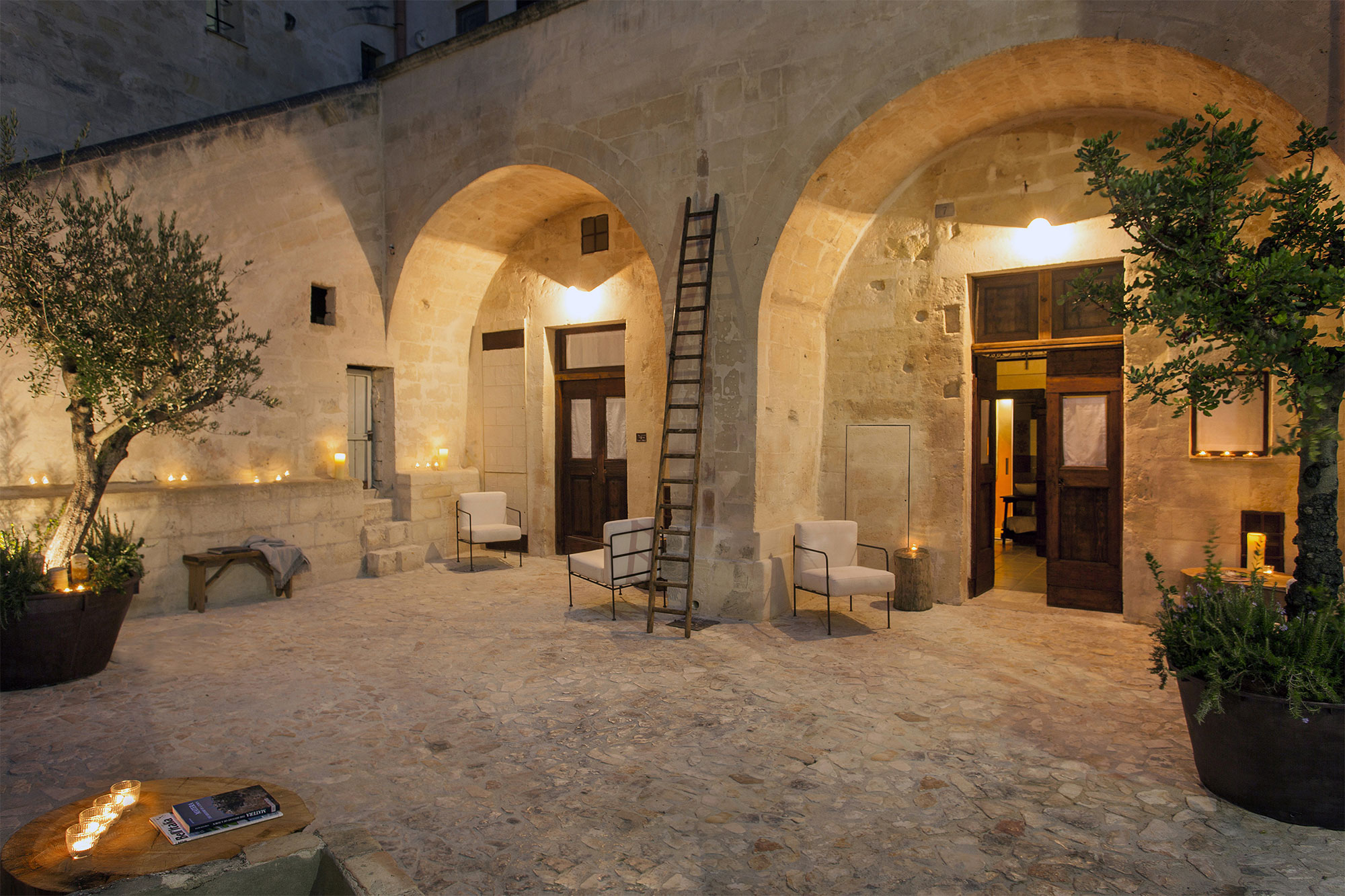 Nel cuore degli antichi Rioni Sassi, una struttura abbandonata e in disuso, risalente al 1600, distribuita intorno ad una corte, è stata restaurata e reinventata per accogliere gli spazi nuovi di un Albergo. Fernando e Marisa Ponte, committenti appassionati e da sempre affascinati dalla magia dei Sassi, hanno creato un luogo intimo ed accogliente dove si alberga “come a casa di amici”.