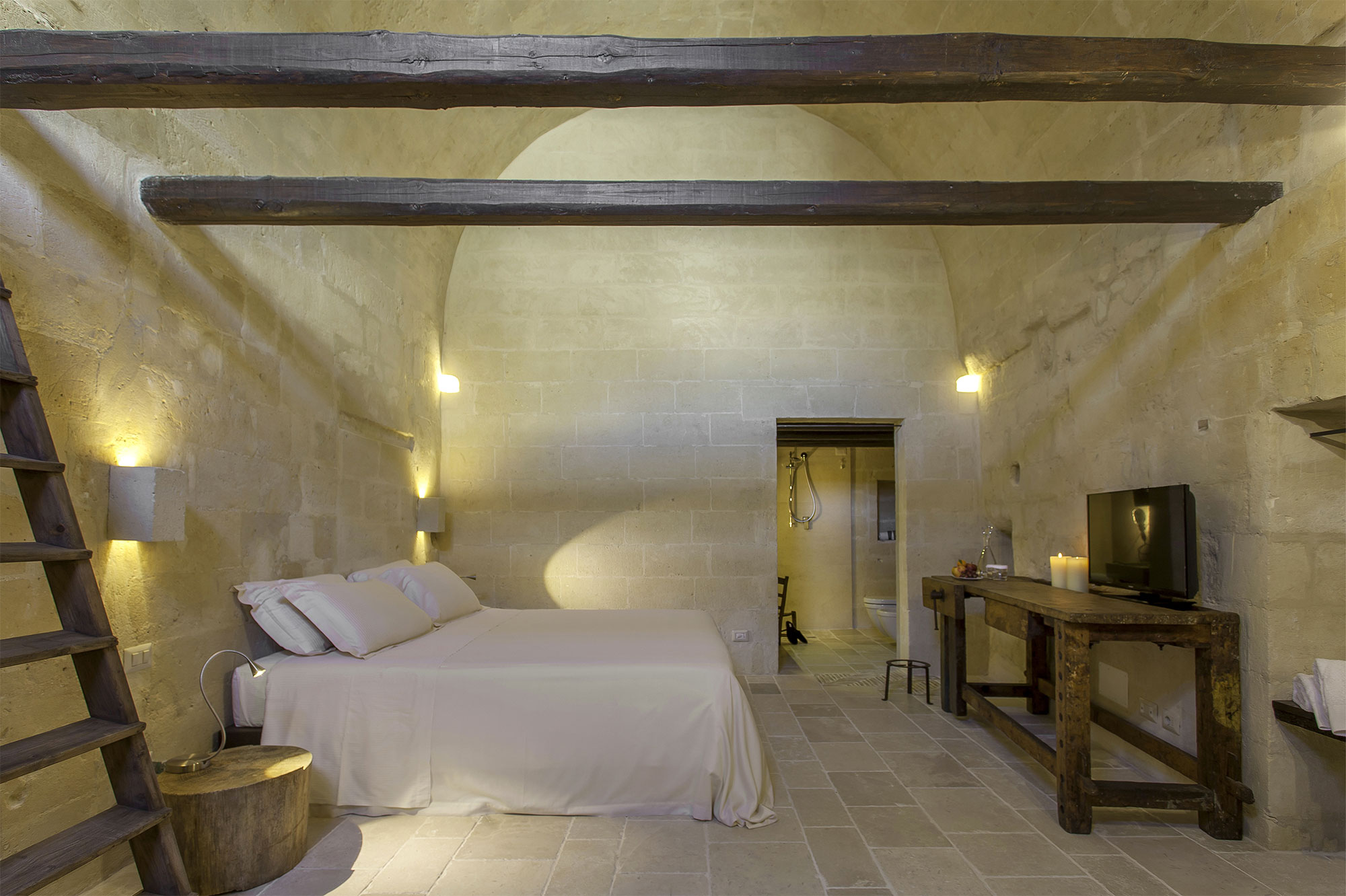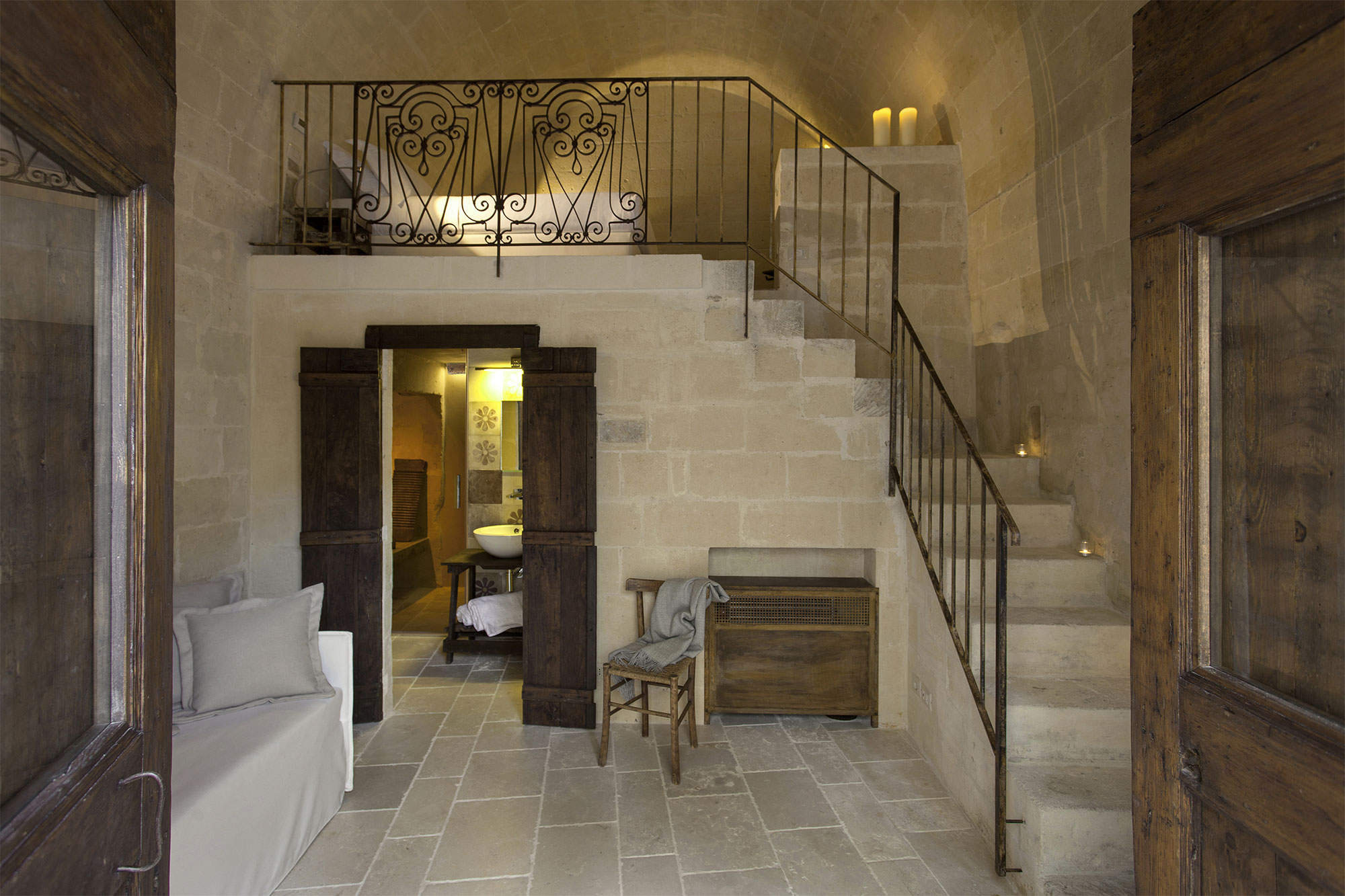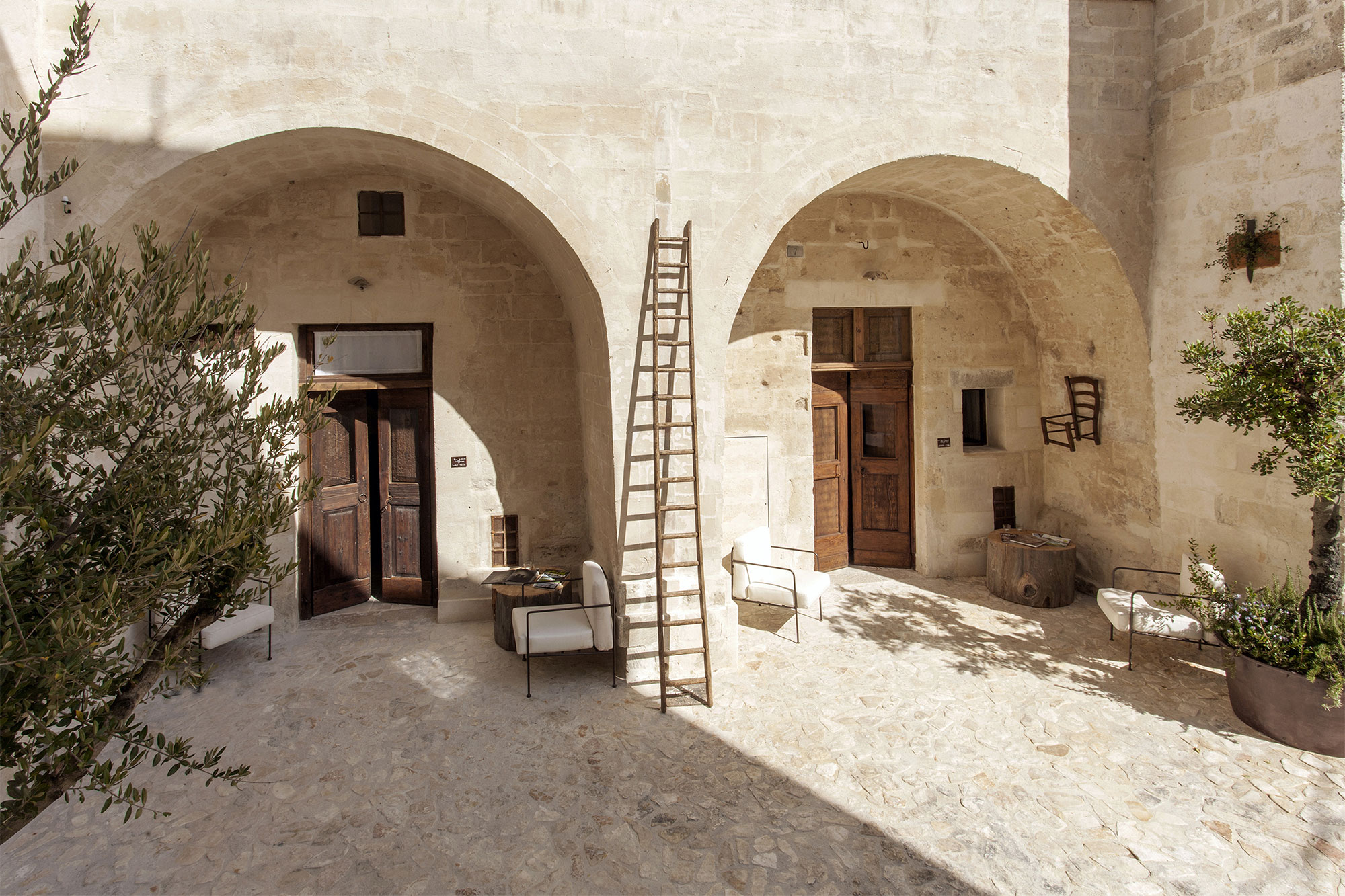 Nel cuore degli antichi Rioni Sassi, una struttura abbandonata e in disuso, risalente al 1600, distribuita intorno ad una corte, è stata restaurata e reinventata per accogliere gli spazi nuovi di un Albergo. Fernando e Marisa Ponte, committenti appassionati e da sempre affascinati dalla magia dei Sassi, hanno creato un luogo intimo ed accogliente dove si alberga “come a casa di amici”.