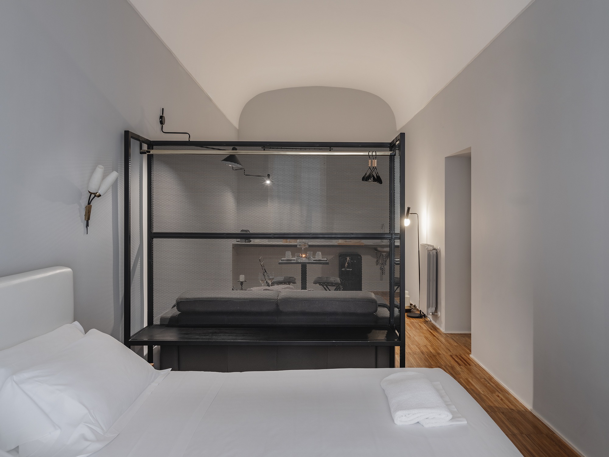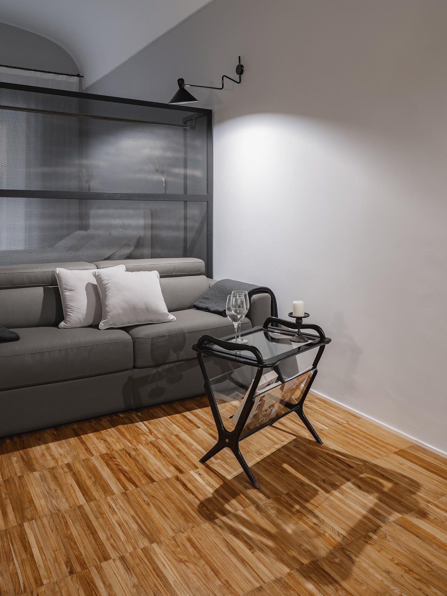 L’intervento, senza interferire con le murature portanti e le volte in pietra presenti. ha seguito linee guida precise: assicurare performances acustiche a prova di rumori interni tra camere adiacenti; consentire la massima permeabilità della luce naturale; creare la percezione di un open space omogeneo assicurando nel contempo un diaframma discreto tra zona living e zona notte, nel rispetto della privacy.