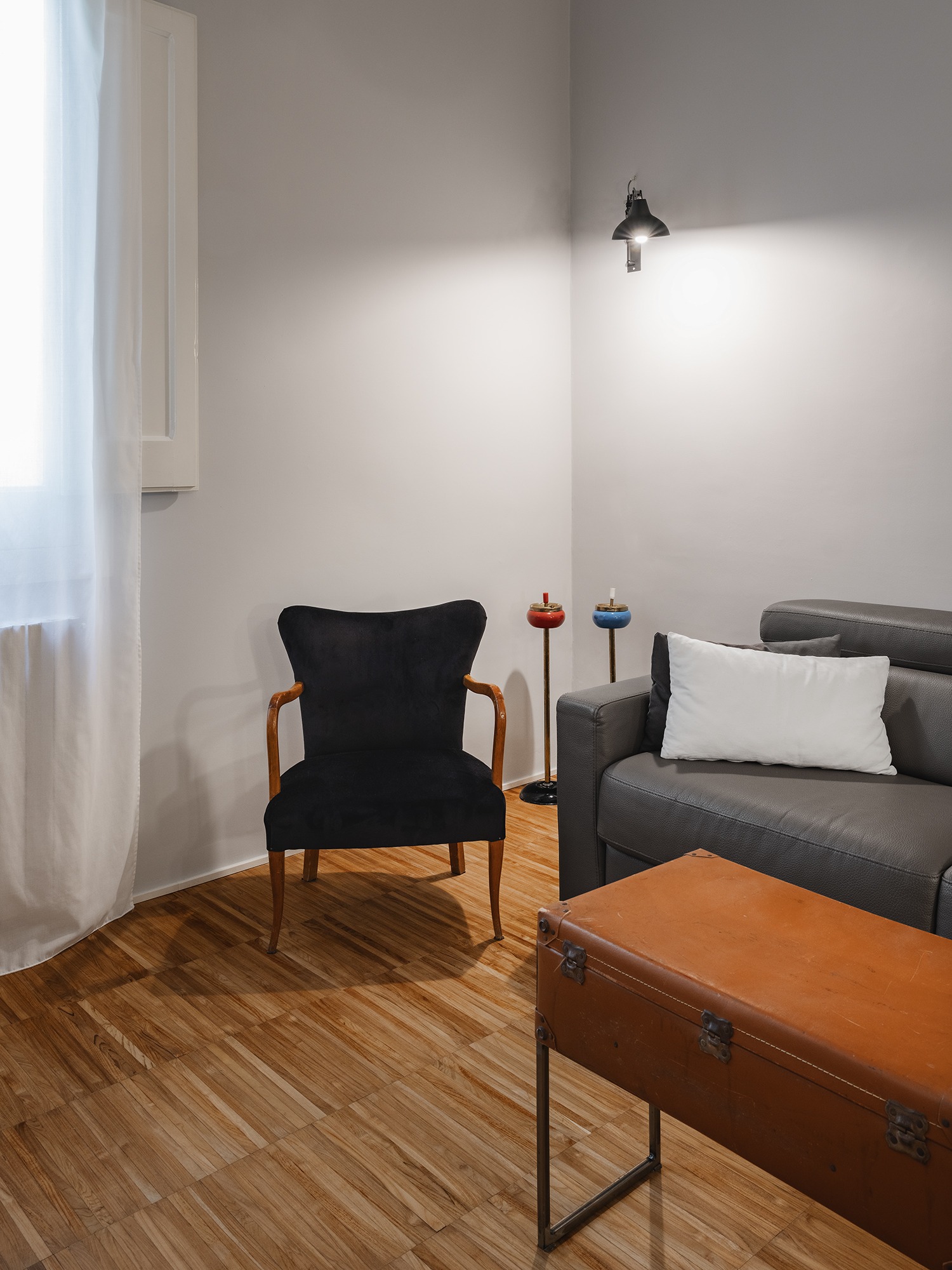 La residenza Lidia Chambre d’Hotes è un luogo dove rilassarsi ma nel quale poter essere sorpresi. Ogni pezzo dell’arredamento, dai tavolini in ferro e marmo alle lampade in vetro e ottone, dagli specchi ai posaceneri anni 20, è stato scelto con cura, nel rispetto del medesimo criterio: il legame tra passato e presente convivono in un gioco di equilibri e intrecci sottili. Cosi, il parquet in teak naturale e le pareti grigio polvere fanno da cornice ai mobili ed oggetti ricercati con passione dalla sig.ra Annamaria nei luoghi più disparati: dalla soffitta della nonna ai mercatini dell’usato fino ai negozi di arredamento vintage più cool di Milano.